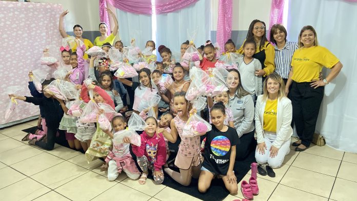 Foi realizada no dia 5 de agosto, a primeira cerimônia de entrega de uniformes das crianças matriculadas no projeto de ballet, desenvolvido pela ONG Margaridas Projetos Pra Vida, núcleo Cachoeira do Vale. A distribuição contou com a presença e prestígio da diretora do Instituto Usiminas, Penélope Portugal, e da representante do Instituto, Luana Vieira. “Margaridas Projetos para a Vida tem sido de fundamental importância para a vida dessas crianças, atuando como um eficaz instrumento de transformação de realidade social e de perspectivas para o futuro”, destacou Luana.