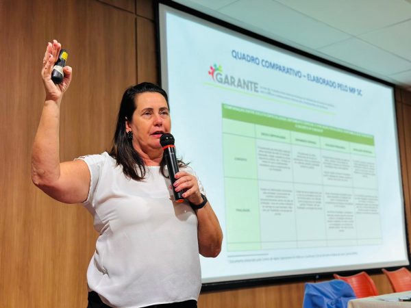 O evento contou com a palestra da assistente social Janice Merigo, especialista em Políticas Públicas (UnB), mestre (PUCRS) e doutoranda em Serviço Social (UFSC), que deu uma aula sobre as habilidades centrais para acolher, atender e encaminhar casos envolvendo crianças e adolescentes em situação de violência.