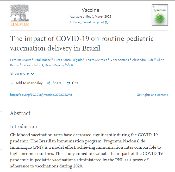“Participar em mais uma pesquisa junto com profissionais das mais renomadas instituições do mundo, como Harvard e USP, é uma oportunidade e experiência única. Conseguimos correlacionar a redução na vacinação pediátrica no Brasil com o COVID-19, assim podemos apontar futuras direções para a retomada”, completou o acadêmico.