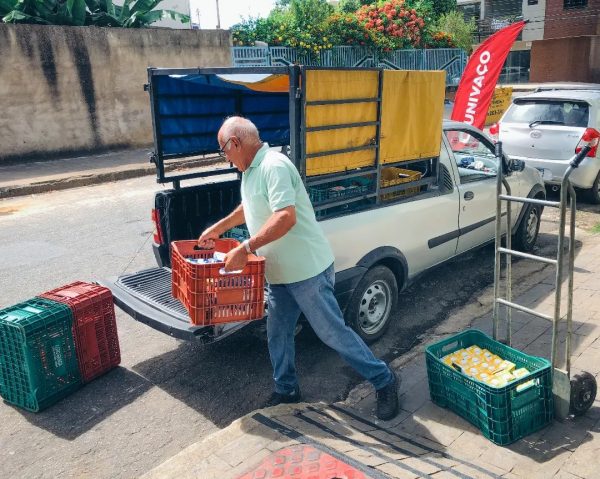 Funcionário da Casa da Esperança recolhendo os leites na instituição