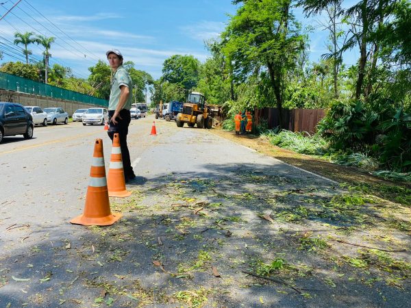 Agentes de Trânsito da Prefeitura Municipal estão posicionados em todos os locais onde houve quedas de árvores e de postes, causas da interdição de vias. Mas, ainda assim, é necessário ter a máxima atenção.