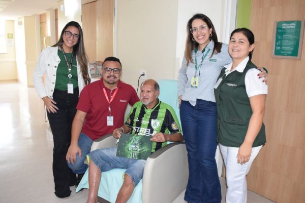 Além da presença do setor de Comunicação e Marketing da Unimed e da Dra. Tássia Franco, o jurídico do HMVA, membros da equipe assistencial que acompanham o paciente, participou da entrega do presente. Todos se emocionaram com a alegria do senhor Ney em receber a camisa.