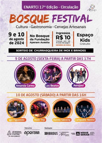 O Bosque Festival integra o Enartici 17ª edição – circulação, projeto realizado pelo grupo Hibridus em parceria com a Fundação Aperam Acesita, com o patrocínio da Aperam South America, via Lei Estadual de Incentivo à Cultura – CA 2018.13608.0277.