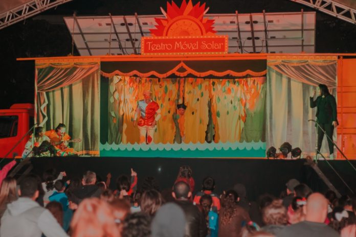 O caminhão vai oferecer uma programação especial: espetáculo “A Princesa e o Gigante”, às 15h, seguida de apresentação de artistas locais às 16h; “Caixola de Histórias” às 17h30 e, encerra com exibição de curtas, a partir de 18h30. O projeto retorna para a estrada de forma acessível, com tradução em Libras, e autossuficiente em energia. Desde 2015, a instalação de módulos fotovoltaicos no contêiner palco já permitia uma iluminação 100% solar. Com as melhorias, todo o sistema de som e luz será sustentável, tendo o sol como personagem central da itinerância.