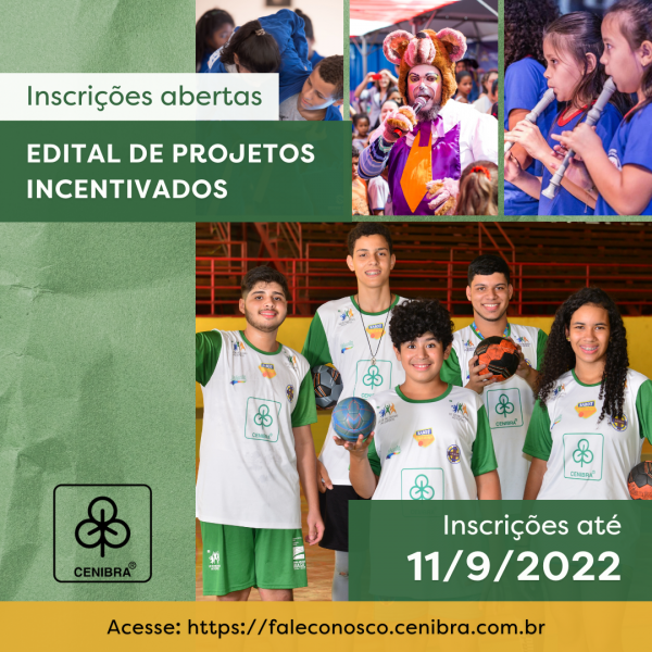 A CENIBRA abriu as inscrições para participação no Edital de Projetos Incentivados, iniciativa que permite a promotores de projetos socioculturais, esportivos e de saúde captarem recursos da Empresa via leis de incentivo. O objetivo é melhorar a qualidade de vida das comunidades localizadas nos 54 municípios da área de atuação.