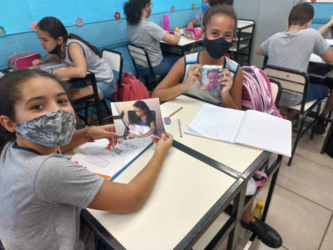 A cartilha inspirou Angélica a desenvolver um projeto batizado como O historiador e o entrevistado, “que consistiu em apresentar aos alunos o papel do historiador e da história, da memória de cada pessoa na construção da história como um todo. Inicialmente, os temas foram tratados de modo conceitual e, em seguida, realizamos um trabalho prático com os patrimônios pessoais dos alunos. Cada um trouxe de casa algo que foi importante para a sua história, como fotografias, livro de receitas da avó, o primeiro dentinho, a bolsa que a mãe levou pra maternidade, toalha de batizado, os primeiros carrinhos, dentre outros itens. Em dupla, os alunos se revezaram nos papéis de entrevistado e historiador, responsável por fazer o inventário dos bens do colega”, conta a professora. O trabalho foi finalizado com o estudo sobre patrimônios de Ipatinga, que se encontram na sede. Alguns patrimônios foram coloridos pelos alunos, um recurso lúdico que ajudou as turmas a observar com mais atenção detalhes desses bens.