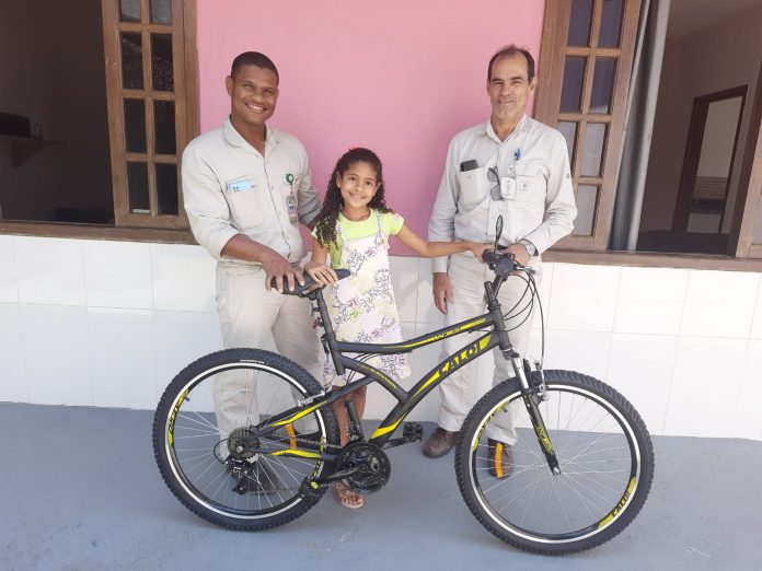 A pequena Sarah ganhou uma bicicleta por ter feito o melhor desenho