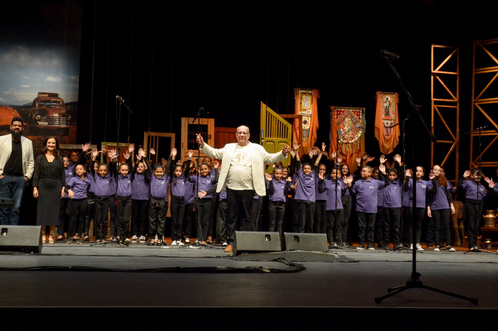 O Coral Infantojuvenil Aperam subiu ao palco do Palácio das Artes, em Belo Horizonte, na noite da última terça-feira (4/7), como convidado do cantor, compositor, ator e humorista Saulo Laranjeira. A apresentação foi gravada pela Rede Minas festejando os 35 anos de estreia do programa Arrumação e contou com a presença de plateia e artistas convidados. A temporada será exibida a partir de setembro, na Rede Minas.