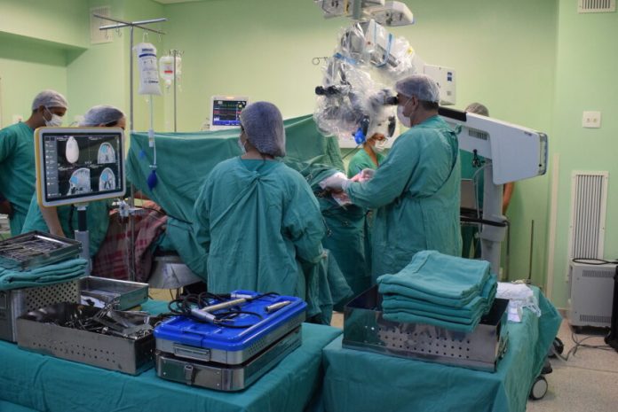 “Por se tratar de um tumor localizado próximo a área da fala, é necessário que o paciente seja acordado durante a cirurgia. Isso porque ao longo do procedimento, que é de alta complexidade, aplicamos estímulos as áreas no entorno do tumor, enquanto o paciente é submetido a testes cognitivos e de linguagem. Assim temos um alto grau de precisão das áreas acometidas pelas células cancerígenas e das saudáveis, evitando lesões”, explicou o Dr. James Morais.