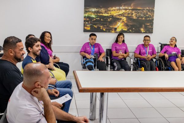 A equipe do Projeto Paralímpico Educação Integral 7 de Outubro /Liespe, apoiada pela Prefeitura de Ipatinga, foi recebida em clima de festa, nesta segunda-feira (11), no gabinete do prefeito Gustavo Nunes. Na oportunidade, os atletas e a comissão técnica apresentaram as medalhas e resultado obtido nas finais da Paralímpiada Estudantil disputada entre 27 de novembro de 2 de dezembro, em São Paulo. Os atletas voltaram com 11 medalhas, duas de ouro, oito de prata e uma de bronze, representando com garra o município junto à delegação mineira.