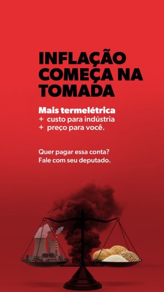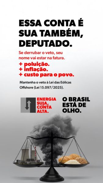 Sob o mote “Diga não às termelétricas. O Brasil merece energia limpa e barata”, a campanha “Energia Suja, Conta Alta” apresenta, com dados concretos, os impactos econômicos e sociais de uma eventual derrubada dos vetos. O uso de termelétricas eleva a inflação e compromete toda a cadeia produtiva: pão mais caro (+4%), cesta básica mais pesada (+6%) * e aumento de 9% na conta de luz, conforme levantamento da Consultoria PSR. “Os brasileiros não podem pagar a conta de uma escolha errada. Precisamos de responsabilidade e visão de futuro para garantir uma energia sustentável, competitiva e acessível para todos”, conclui Flávio Roscoe.