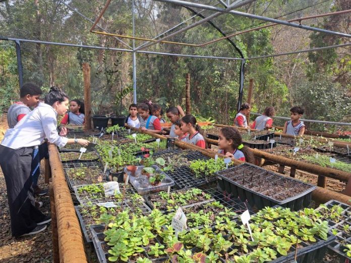 As visitas dos estudantes começaram por uma trilha interpretativa em um curto trajeto dentro do Oikós, chamando atenção para as espécies nativas preservadas no local. Em seguida, as crianças foram recebidas pelos idosos participantes do projeto Mãos na Terra. Juntos, crianças e idosos, plantaram mudas de suculentas e conversaram sobre a preservação das florestas para o futuro das próximas gerações.