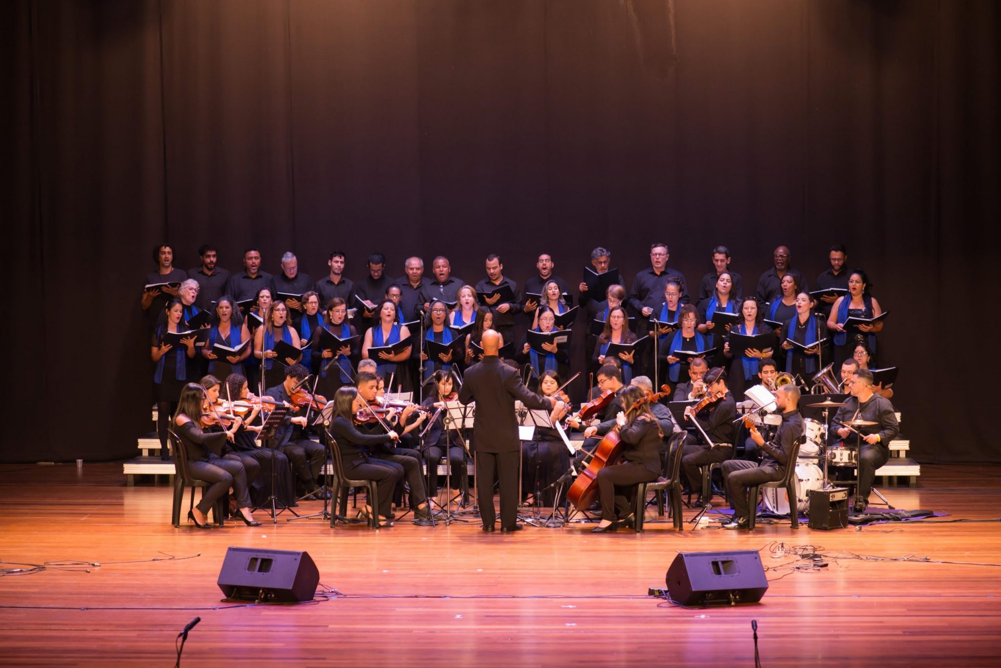 Mais de cem artistas musicais subiram ao palco do teatro do Instituto Usiminas para a comemoração de seis décadas da Corporação Musical Santa Cecília