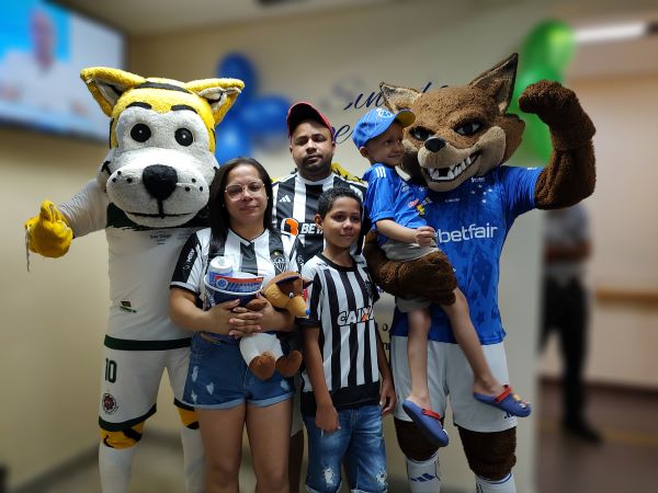 Ao ver o Raposão, os olhos de Emanoel brilharam de alegria e o grito de “zêrooo” entoou, sendo um momento que encheu de emoção não só seus pais, Adilson Ferreira Ramos e Eliane Miranda dos Santos, mas todos os profissionais que acompanharam essa jornada. “Momentos como esse, não apenas proporcionam momentos de alegria e esperança para a criança, mas também ajudam a criar um ambiente mais acolhedor e humano durante esse período desafiador. O sorriso de uma criança é um dos melhores remédios e, através dessa ação, buscamos iluminar o dia do Emanuel e inspirá-lo a continuar lutando. Quero também expressar minha sincera gratidão ao Cruzeiro Esporte Clube e ao Ipatinga, por sempre nos apoiarem e cederem os mascotes para essas causas importantes”, pontua Yatiara.