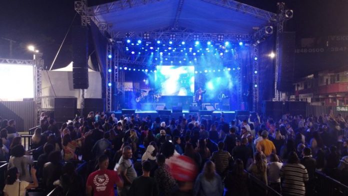 Evangélicos lotam Praça  do Coreto na primeira noite da Expo Inox, em Timóteo