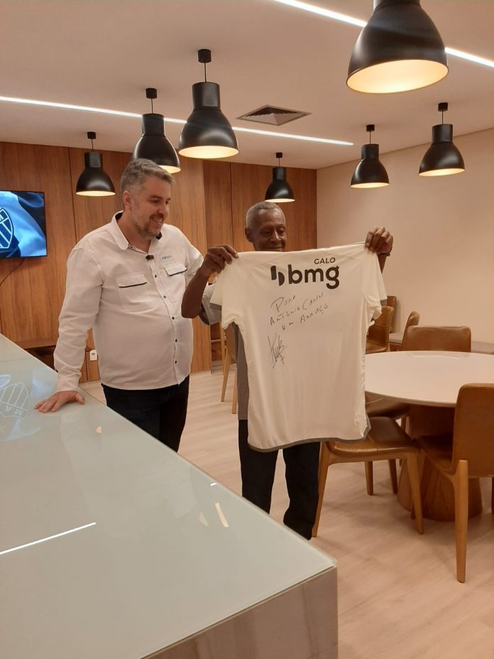 Antônio Carlos, o Galo, recebendo sua camisa autografada por Hulk -