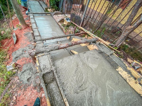 Nesta segunda-feira (4), equipes da Secretaria Municipal de Obras Públicas da Prefeitura de Ipatinga trabalharam durante todo o dia na concretagem da escadaria Maria Maria, no bairro Bethânia. A passagem, que é utilizada por dezenas de pessoas, se encontrava inacessível devido a um desmoronamento ocasionado pelas chuvas e que impedia que homens, mulheres e crianças transitassem de forma segura. O local apresentava risco de acidentes.