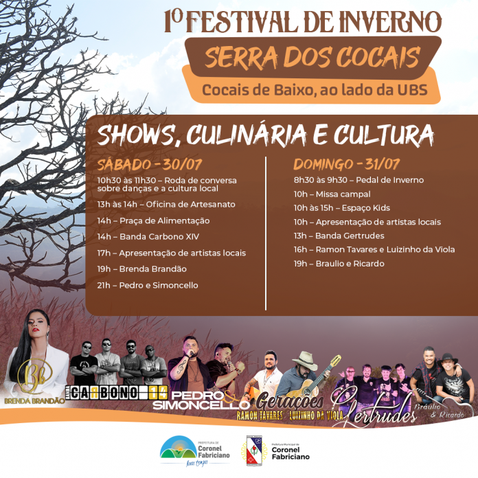 “Nós pensamos grande e tenho certeza que a comunidade de Cocais não vai esquecer esse Festival, mesmo porque acreditamos que o evento entrará na nossa agenda anual de cultura. Este é o começo dos grandes projetos culturais previstos para Coronel Fabriciano. Eu convido os moradores de toda a região, Timóteo, Santana do Paraíso e Ipatinga a estarem conosco nesse evento aconchegante e muito cultural”.