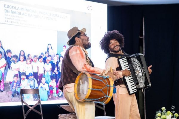 Walace Maia e Douglas Netto do DAMA, durante a intervenção teatral do Balanço Social. Foto: Elvira Nascimento