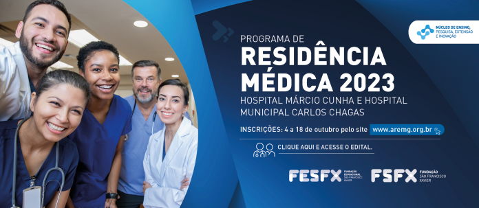 O Núcleo de Ensino, Pesquisa, Extensão e Inovação (NEPEI) da Fundação São Francisco Xavier (FSFX), entidade beneficente de assistência social, abre inscrições para o Programa de Residência Médica 2023 de 4 a 18 de outubro. Serão 45 vagas, distribuídas entre o Hospital Márcio Cunha (HMC), em Ipatinga, e o Hospital Municipal Carlos Chagas (HMCC), em Itabira.