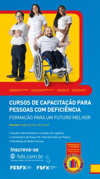 O Programa visa promover a inclusão e igualdade, oferecendo cursos de capacitação profissional gratuitos e exclusivos para pessoas com deficiência, com idade mínima de 16 anos, que tenham concluído ou estejam cursando o Ensino Médio. Com uma carga horária de 20 horas, as aulas acontecerão nas modalidades presencial e on-line, sendo disponíveis os cursos: Auxiliar Administrativo, Auxiliar de Logística, Introdução ao Power BI, Atendimento ao Público e Marketing de Redes Sociais.