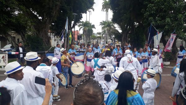 Os moçambiqueiros, liderados pelo mestre Luís Fabiano, caminharam pelas ruas de Vila Velha, entoando cantos e tocando tambores, com destino à Igreja De Nossa Senhora do Rosário, um dos mais antigos templos religiosos em atividades no Brasil. No local, ocorreu a retirada dos mastros de São Benedito e Nossa Senhora do Rosário, ritual que encerrou os festejos dos 487 anos de colonização, evento que teve início no 23 de maio.