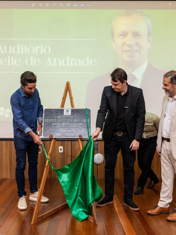 A Prefeitura de Ipatinga realizou, na manhã desta sexta-feira (3/10), uma cerimônia simbólica no Hospital Municipal Eliane Martins (HMEM) para marcar a denominação do auditório, que passa agora a se chamar Sérgio Leite de Andrade. A homenagem foi proposta pelo vereador Pastor Fernando Castro, por meio do Projeto de Lei 178/2025, aprovado na Câmara e sancionado pelo prefeito Gustavo Nunes (Lei Nº 5.193 de 01/09/2025).