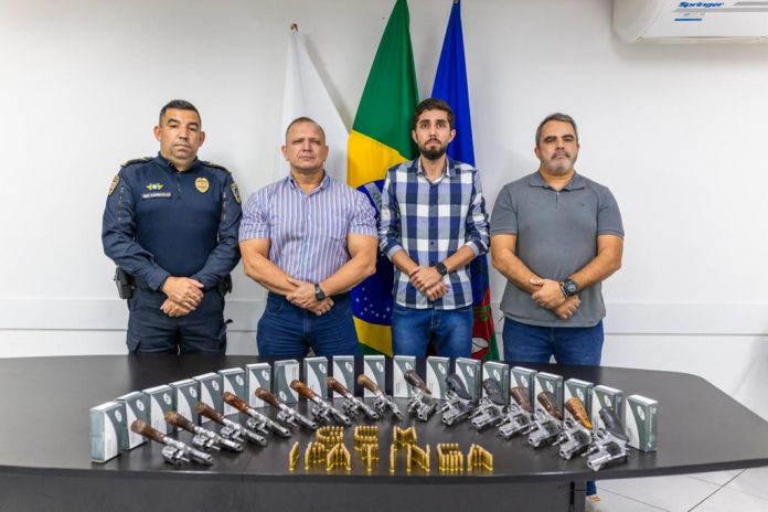 A Prefeitura de Ipatinga, por meio da Secretaria de Segurança e Convivência Cidadã (Sescon), recebeu nesta terça-feira (27) 15 revólveres e 4.000 munições calibre 38, doados pela Secretaria de Justiça e Segurança Pública do Estado de Minas Gerais para utilização pela Guarda Civil Municipal. Os materiais foram entregues ao prefeito Gustavo Nunes e o titular da Sescon, Warley Silva, na sala de reuniões do gabinete do Executivo.