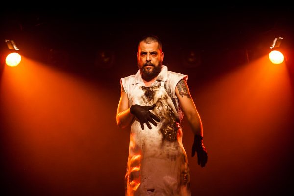 Em cena, esse monstro se materializa em uma figura que se aproxima a de um açougueiro. “Esse personagem foi se firmando durante todo o processo de construção da dramaturgia. Mas não podia ser um açougueiro qualquer. Precisava ter o lado do cientista, do médico. E que faz de si a sua própria cobaia”, acrescenta o ator e diretor.