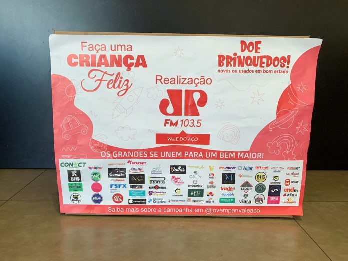 A Jovem Pan Vale do Aço, 103,5 FM, organiza, em parceria com mais de 60 empresas, a maior campanha de arrecadação de brinquedos do Vale do Aço. A ação tem o objetivo de fazer o próximo Dia das Crianças mais feliz para milhares de meninos e meninas da região.