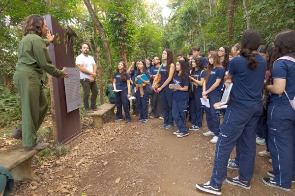 Para Sofia Miranda, aluna do 1º ano Ensino Médio do Colégio Católica Padre de Man, a visita surpreendeu pela experiência que une o contato com a natureza, história e arte. “Quando cheguei aqui achei tudo bonito, cercado por muito verde, uma vegetação que impressiona. A forma como a história foi contada me emocionou muito. Me senti muito acolhida pela mata, pelo teatro e toda essa estrutura da estação”, expressou.