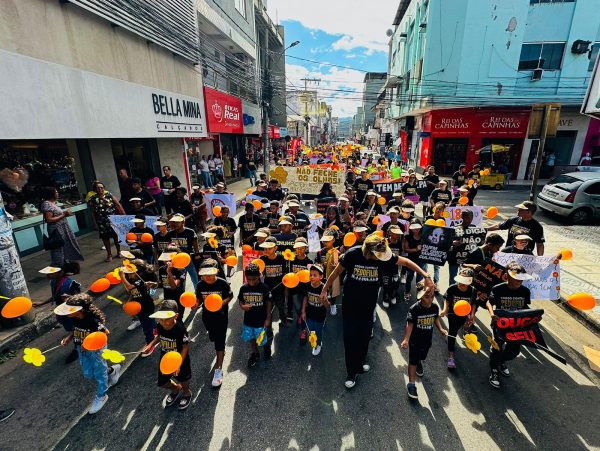 Integrando a programação do Maio Laranja, caminhada foi realizada na tarde desta sexta-feira (10) em ruas do Centro da cidade