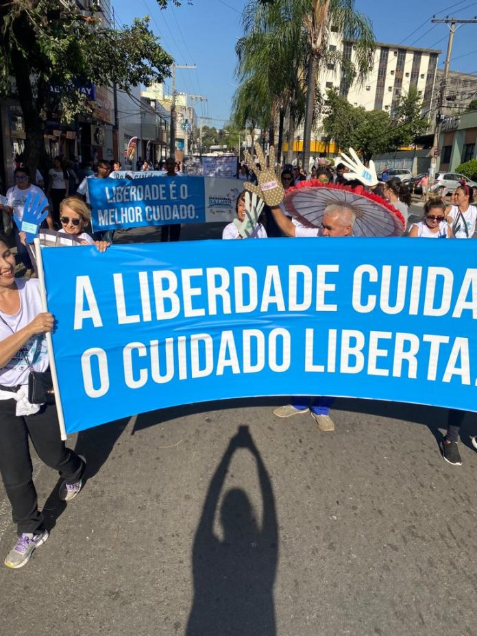 Com o tema “Pela garantia do cuidado em liberdade, ocupando todos os cantos da cidade”, a caminhada pela avenida 28 de Abril contou com a participação de mais de 300 pessoas. O objetivo do evento foi envolver a comunidade nas discussões sobre as diversas formas de sofrimento mental e levar informações sobre os serviços e tratamentos ofertados por uma equipe multiprofissional na rede municipal de Saúde, e que substituem os hospitais psiquiátricos – que vêm sendo fechados progressivamente desde 2002, em atendimento à Lei Federal 10.216.