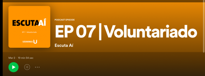 Em seu sétimo episódio, o EscutaAí, série de podcasts gravados com profissionais da Usiminas e convidados, aborda um assunto que tem feito muita diferença na vida das pessoas: o voluntariado. Trocas de experiências, serviço, apoio, cidadania, doação e empatia, entre tantas outras palavras que, juntas, definem esse trabalho transformador. “Ser voluntário é uma experiência que gera valor para todos e que permite conhecer novas realidades, contribuir com o outro e até mesmo desenvolver novas competências”, afirma Tereza D’Amices, da equipe de Desenvolvimento Social da Usiminas, durante conversa com o Tio Flávio, fundador de um dos maiores movimentos voluntários independentes de Minas Gerais. Todos os episódios podem ser conferidos em plataformas como o Spotify, Deezer, Google Podcasts, Apple Podcasts, Amazon Music, entre outras. Os interessados podem acessar o EscutaAí pelo link https://bit.ly/usiminas_escutaai.