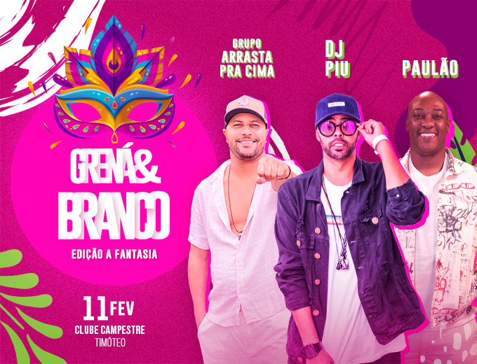 Carnaval chegando e nada melhor do que um aquecimento para recebe-lo com tudo! Em Timóteo será realizado neste sábado (11) o pré-carnaval ‘Grená & Branco: Edição a Fantasia’. A melhor festa de pré-carnaval do Vale do Aço chega com três atrações no Clube Campestre, a partir das 21 horas.