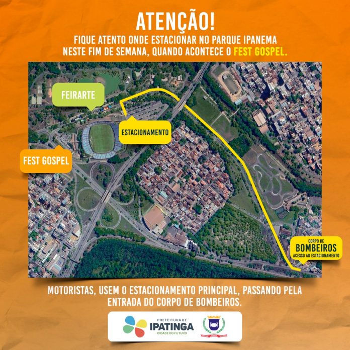 A Prefeitura Municipal de Ipatinga, apoiadora do Fest Gospel, evento cristão que acontece no hall do Ipatingão neste fim de semana, nos dias 28 e 29 de julho, divulgou nota onde reforça sobre o estacionamento de veículos no Parque Ipanema.