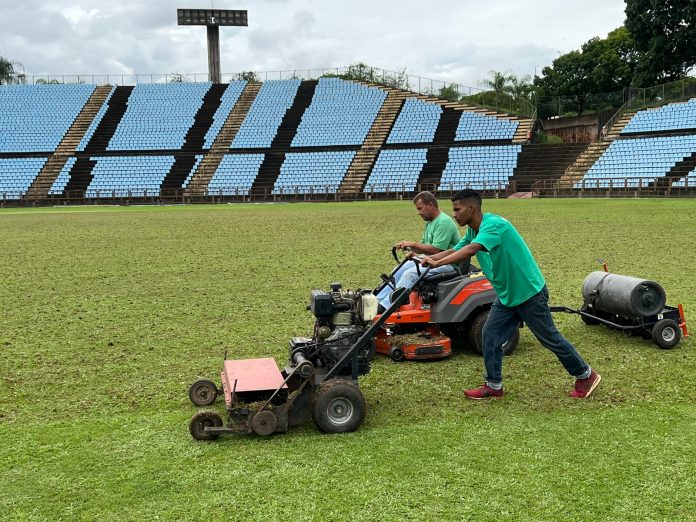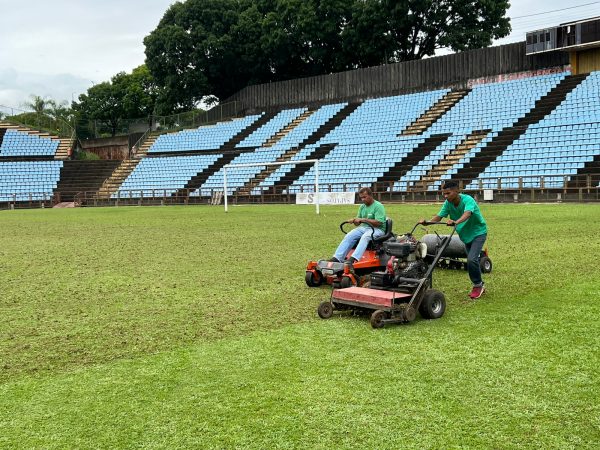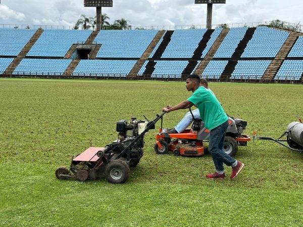 Neste primeiro momento, informam os gestores da Semcel, estão sendo realizadas a aeração e o corte vertical. À medida que for se aproximando o início da edição 2023 do Campeonato Mineiro – Módulo I, o gramado começará a ser pintado e demarcado.