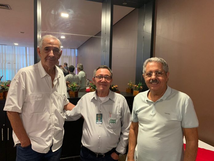 Na foto, O Presidente da AAPI Joaquim Cândido, ladeado do presidente do Grupo Raízes e de um dos membros do grupo, Antônio Carlos.