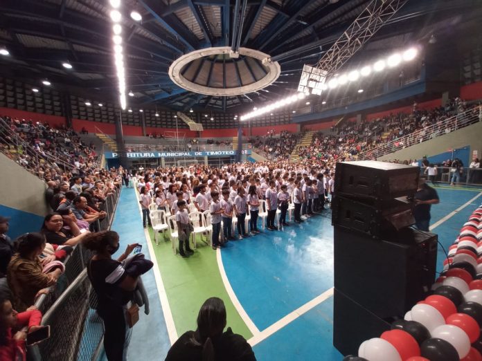 Mais de 500 alunos de oito escolas da rede municipal, estadual e particular de ensino de Timóteo participaram na noite da última quinta-feira (30), da formatura do Programa Educacional de Resistência às Drogas (Proerd), promovido pela 85ª Cia da Polícia Militar de Minas Gerais. A cerimônia foi realizada no Ginásio Poliesportivo Iorque José Martins, e contou com os parceiros do programa – Prefeitura de Timóteo, Fundação Aperam Acesita, Superintendência Regional de Ensino de Cel. Fabriciano, Fundação Emalto e Rotary Club de Acesita.