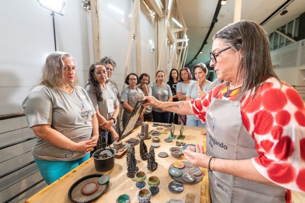 O Projeto Agregando Arte se prepara para a exposição das peças produzidas pelas alunas no curso de formação que ensina a criar artesanato com o agregado siderúrgico, coproduto gerado pela indústria na fabricação do aço. Na última segunda-feira (05/02), o projeto recebeu a visita da designer e curadora da exposição, Mary Arantes, fundadora da marca Mary Design. A mostra está prevista para abril deste ano, no Foyer do Centro Cultural Usiminas.