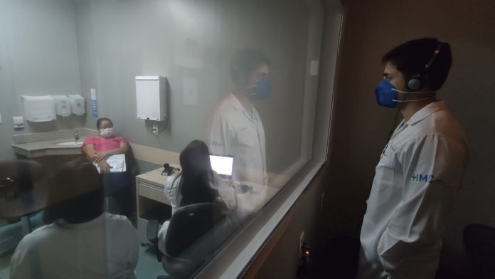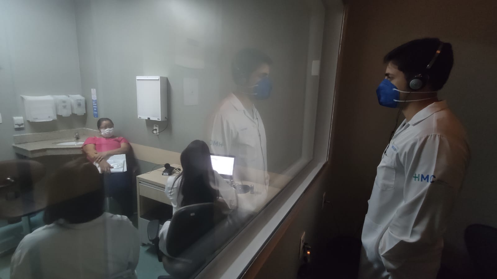 Pioneiro no Vale do Aço, o Hospital Márcio Cunha possui dois consultórios espelhados, um na área de enfermagem e outro na residência de medicina de família. Segundo o Dr. Eike Lúcio Vieira Viana, o consultório tem como objetivo auxiliar o atendimento do paciente e avaliar a conduta do residente. “O paciente sempre é informado que estamos monitorando, e o residente tem conhecimento que pode ser monitorado a qualquer hora, ele é avisado no início da residência. Do lado de fora, podemos monitorar a atuação do médico, como ele interage com o paciente e discutir esse atendimento”, explica.