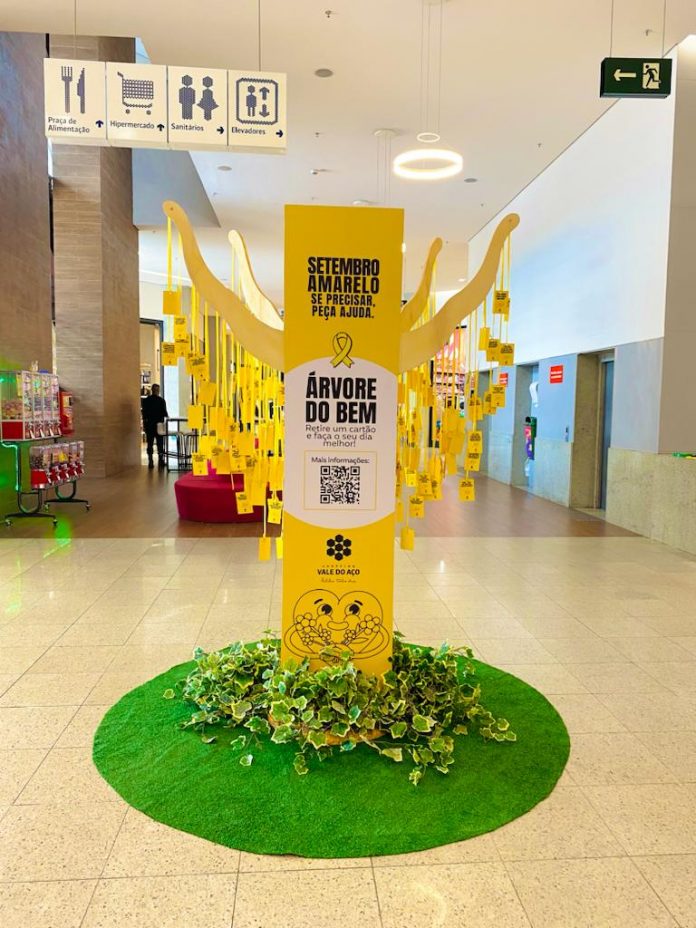“Culturalmente, uma árvore de folhas amarelas simboliza a cura do corpo e da alma. Por isso, foi pensada uma instalação interativa que envolvesse essa crença cultural com o Setembro Amarelo. Acreditamos que esta é uma excelente forma do Shopping Vale do Aço se posicionar perante a comunidade como uma instituição consciente, ao passo que informa a população acerca dessa causa tão importante e necessária”, afirmou Raissa Franco, assistente de marketing do Shopping Vale do Aço.