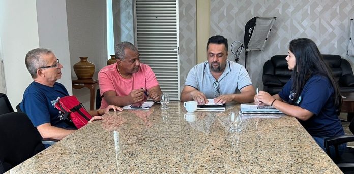 Na última segunda-feira (30), a Câmara Municipal de Ipatinga, por meio do presidente Ley do Trânsito, juntamente com o vice-presidente Ney Professor, se reuniram com a presidente do Sindicato dos Trabalhadores do Município de Ipatinga (Sintserpi), Domitila Morais Gonçalves, e com o diretor Misael Borges para discutir sobre o Projeto de Lei nº03/2023, em tramitação na Casa.