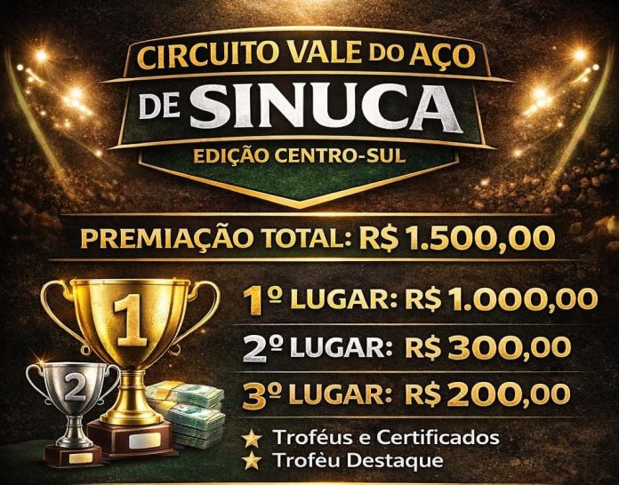 A cidade de Timóteo será palco de um evento esportivo inédito que promete movimentar o cenário da sinuca regional: o Circuito Vale do Aço de Sinuca – Edição Centro Sul. A competição será realizada no próximo (25), a partir das 10 horas, no tradicional Bar Galpão, localizado na Praça 29 de Abril, no bairro Centro Sul.