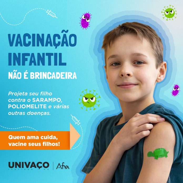 Alunos e professores da Faculdade de Medicina do Vale do Aço – UNIVAÇO, realizarão uma ação, no dia 11 de maio (quinta-feira), entre 6h20 e 7h30, na portaria da Usiminas, no bairro Bom Retiro, para orientar pais, mães e responsáveis sobre a importância da vacinação infantil.