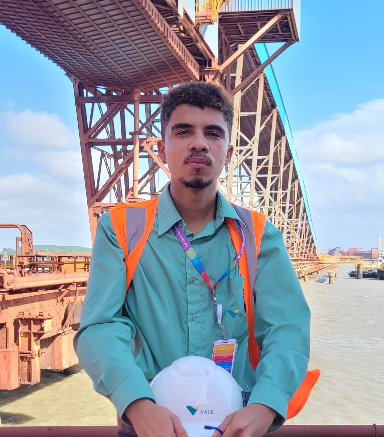 O estudante de engenharia de produção Marcus Vinícius Diniz, de 25 anos, está no 6º período da faculdade e foi um dos aprovados no programa de estágio da Vale em 2023. Atuando em serviços operacionais no Terminal Marítimo de Ponta da Madeira, em São Luís (MA), ele destaca que não é apenas estagiário da empresa, mas sim um agente de transformação.