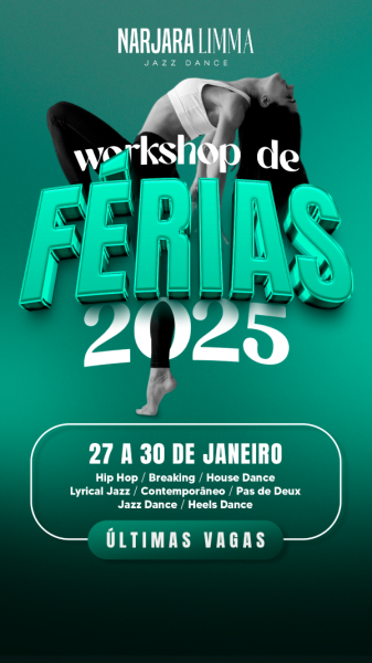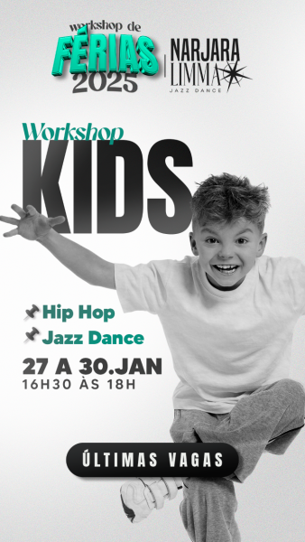 Nos dias 27 a 30 de janeiro 2025, acontece o Workshop de Férias de DANÇA para crianças, adolescentes e adultos. Pensado para dançarinos, professores a apaixonados por dança, o workshop é uma oportunidade incrível para aprimorar e estimular uma vida saudável!