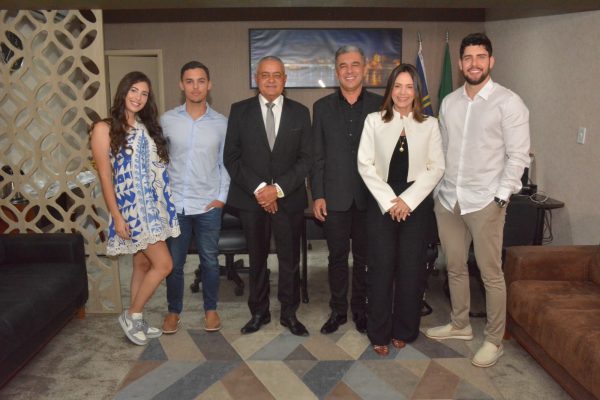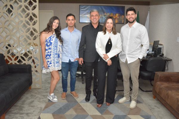 Wallace Barreto ladeado à esquerda, pela esposa Rosana e pelo genro Pedro Donato; à direita, o filho Igor e a nora Luíza