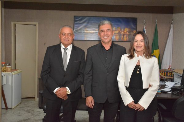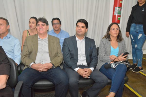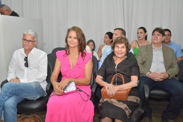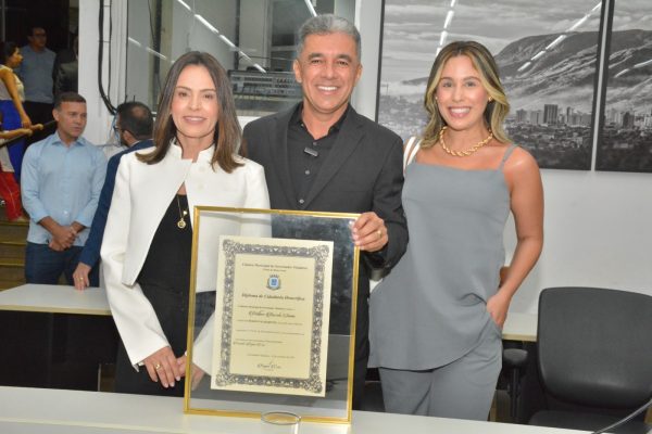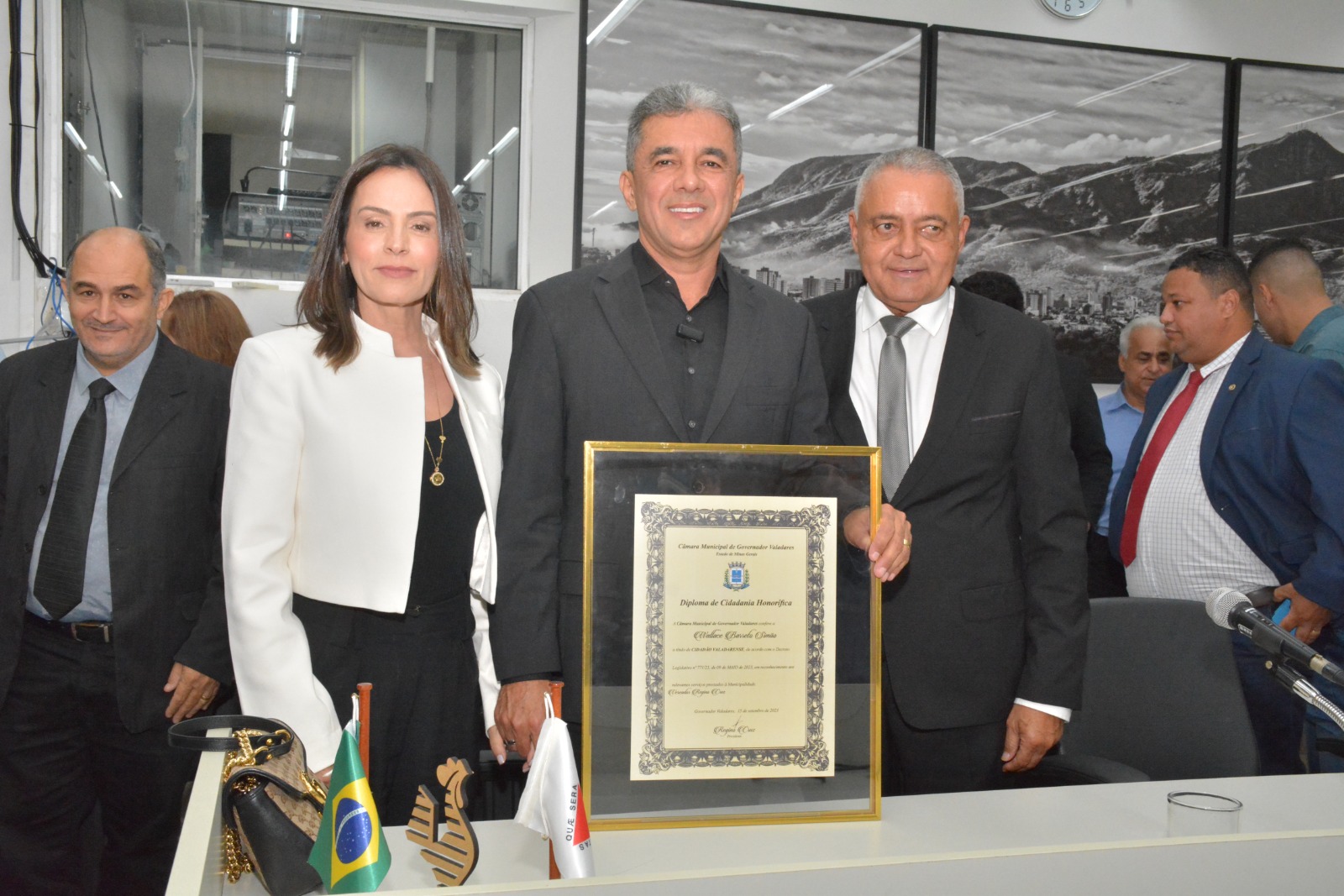 Wallace Barreto, a esposa Rosana  e o presidente da Câmara de GV, Regino Cruz, autor do projeto que propôs a homenagem